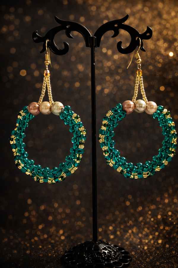 Handgefertigte Ohrringe mit edlen Mostacillas und feinen Details.