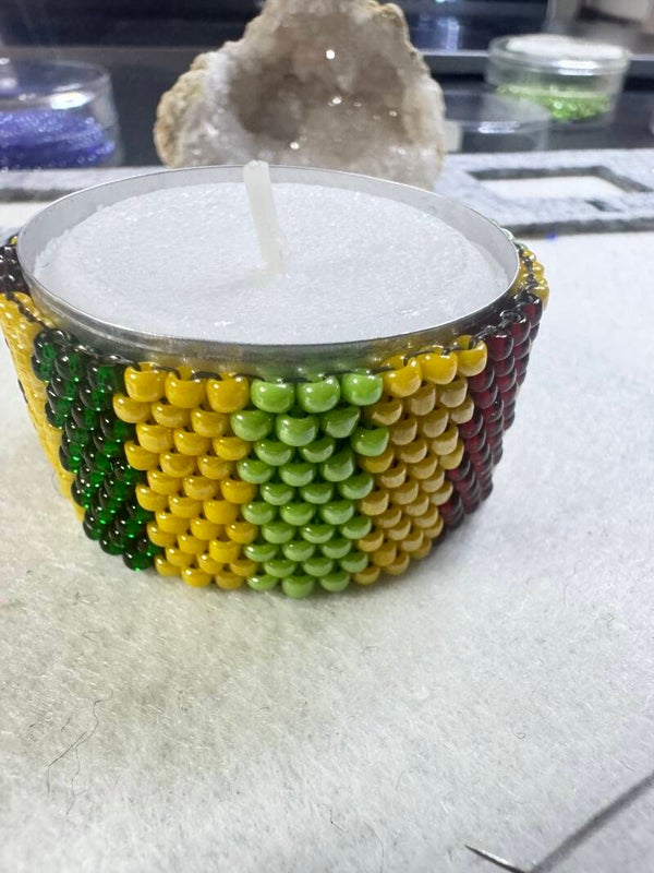 Teelichthalter aus hochwertigen Miyuki-Perlen.