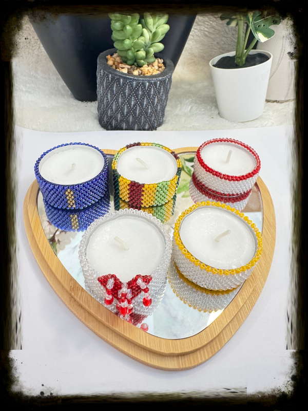 blau und gold personalisiert Teelichthalter